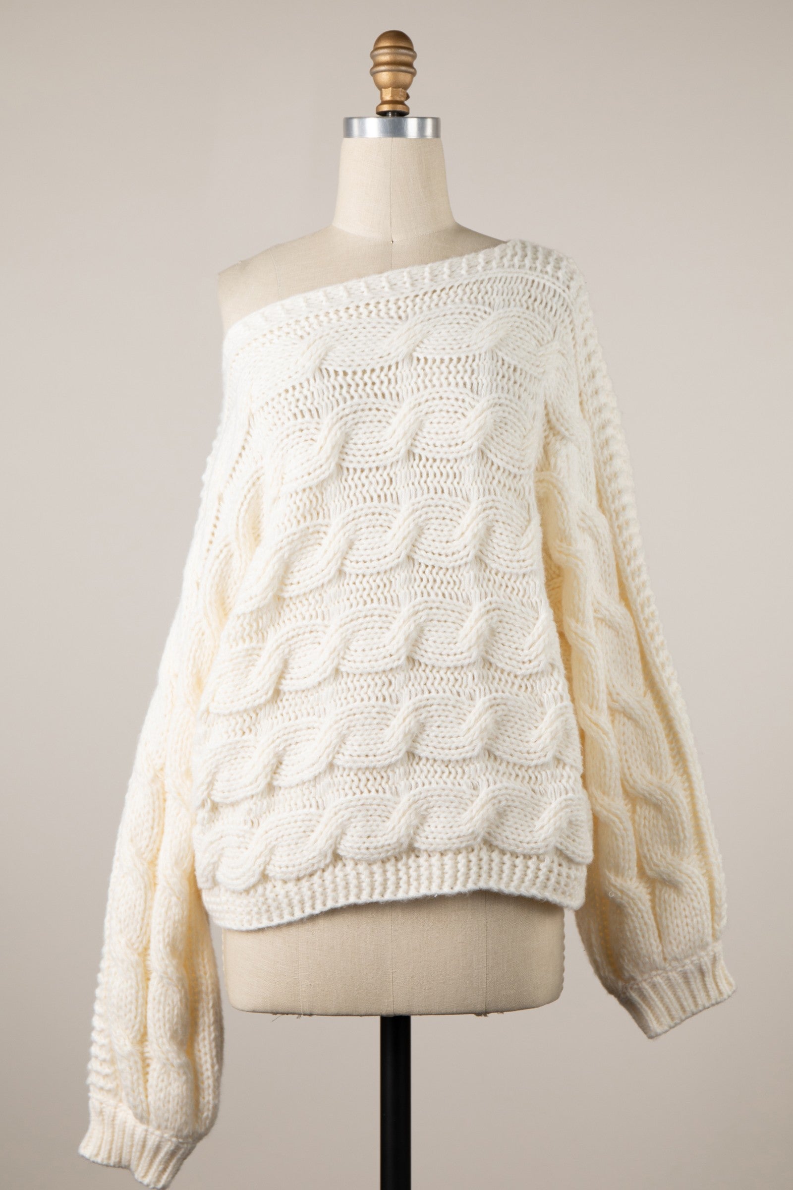 Willow Cream Oversized Cable Knit Sweater – Cute Chunky Knit Pullover