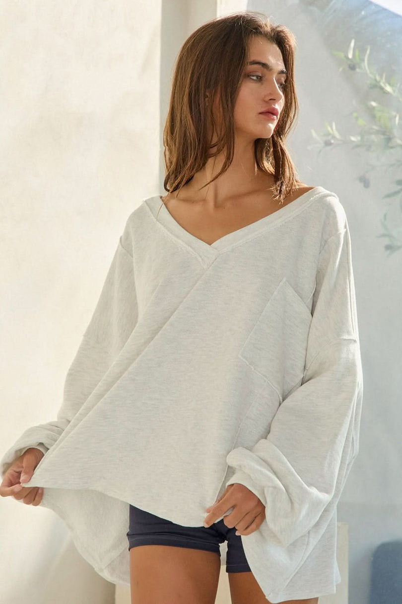 Amber Grey Oversized V-Neck Sweatshirt – Your New Go-To Pullover