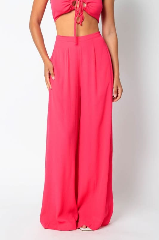 Your vacation outfits will not be complete without the Fira Fuchsia Two-Piece Jumpsuit! Lightweight woven fabric shapes this two-piece set with a strapless keyhole bra top and matching high-waisted palazzo pants. Features an elastic waist and wide legs.